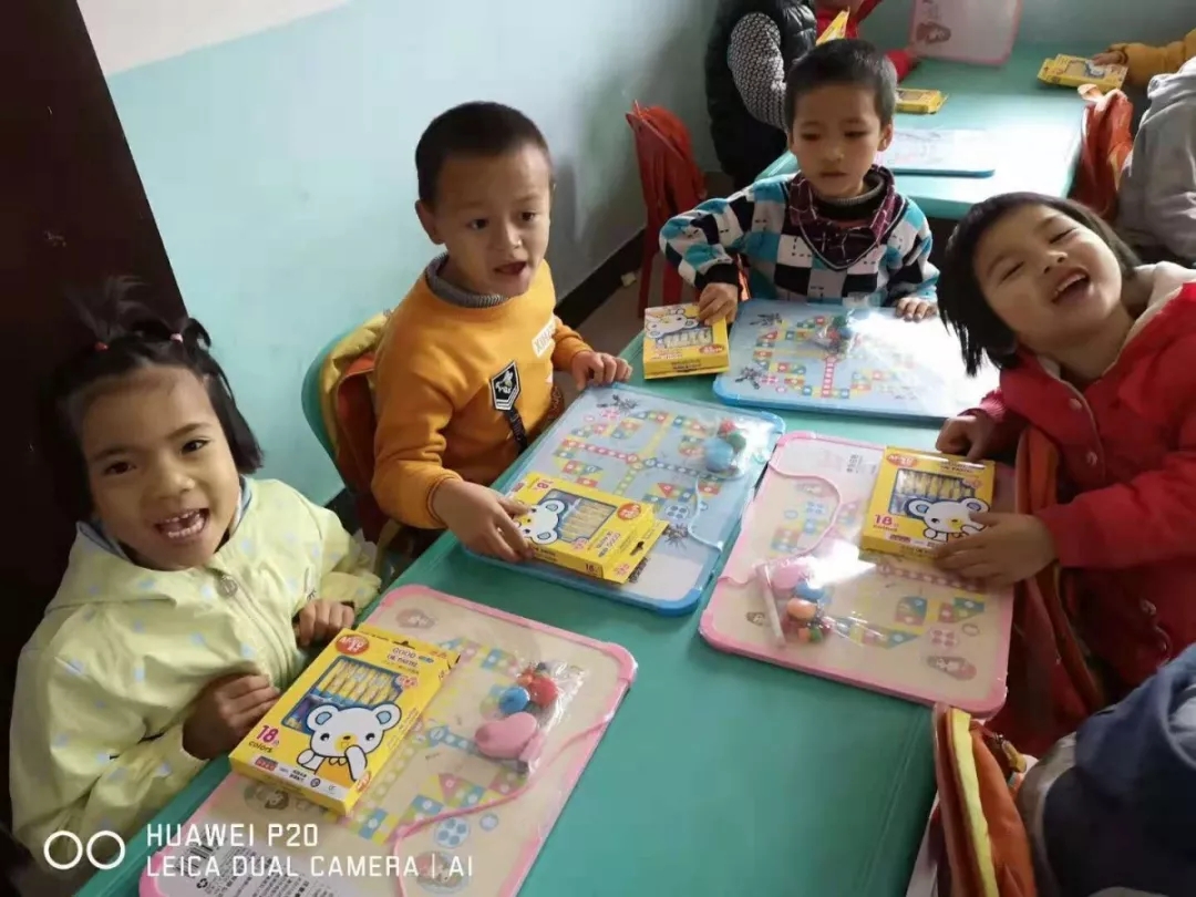 簡單倉促的午餐之后,馬上趕往第一站-潭芬幼兒園。很快路上就有親切、樸素的劉老師在路口等著我們,進行簡單交談后,我們迫不及待的把準備好的白板、蠟筆一一分發給那些可愛、淘氣、歡樂的幼兒園小朋友。
