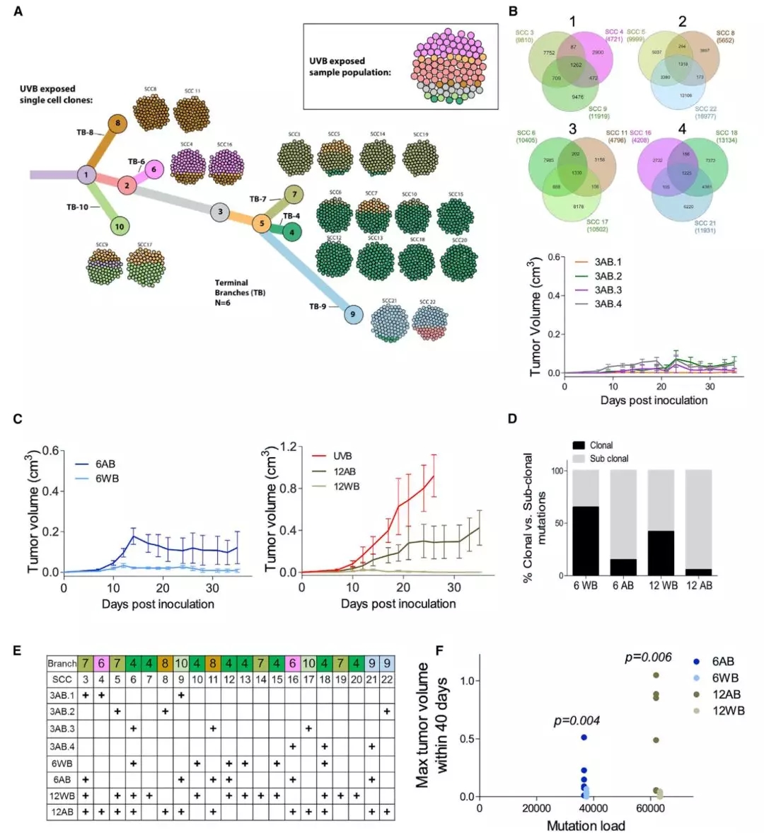 他們從經過紫外線處理的黑色素瘤細胞中,單獨分離出來了兩個單細胞克隆(SCC)。單細胞測序結果發現,這兩個單細胞克隆的異質性非常低,細胞的突變量差異也非常大,從3600到16977個體細胞突變的細胞都有。