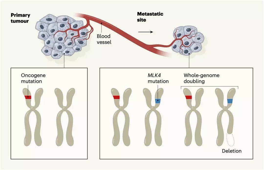 基于上述數(shù)據(jù),研究人員發(fā)現(xiàn),可能真的沒有驅(qū)動(dòng)癌癥轉(zhuǎn)移的特異性突變存在。而且,轉(zhuǎn)移的腫瘤組織中,普遍存在全基因組加倍(WGD)事件,在一些癌種中甚至高達(dá)80%,而在原發(fā)灶中只有30%。這可能與轉(zhuǎn)移灶對(duì)化療的耐受性相關(guān)。