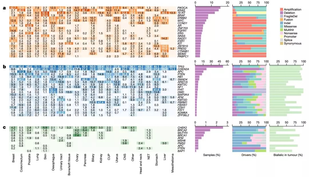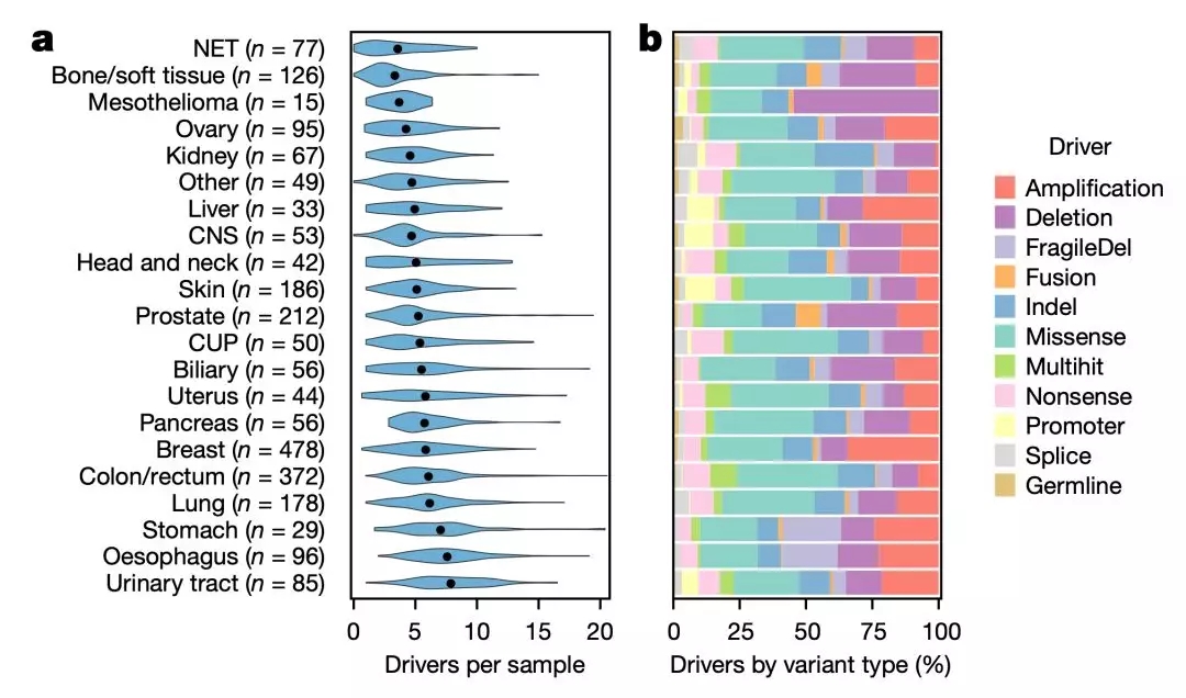 ▲ 不同癌種驅(qū)動(dòng)變異類型分布