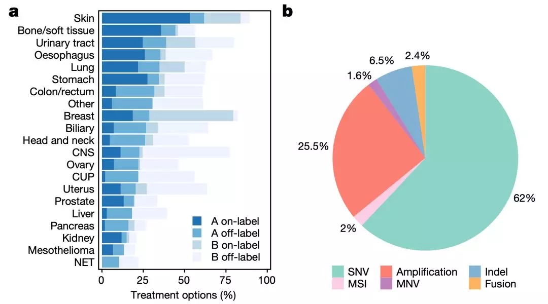 更為重要的是,研究人員還發(fā)現(xiàn),通過全基因組測(cè)序,能幫助62%的患者找到已經(jīng)獲批或者正在開展研究的抗癌藥物。