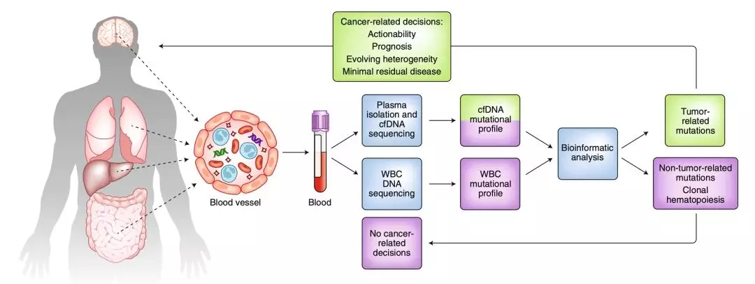 他們發現,腫瘤患者血液cfDNA中攜帶的大部分基因突變,可能不是來自于癌細胞,而是血液中白細胞。