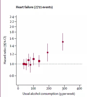 心衰發生率是隨著酒量上漲的,沒有什么“適量喝點”沒事……