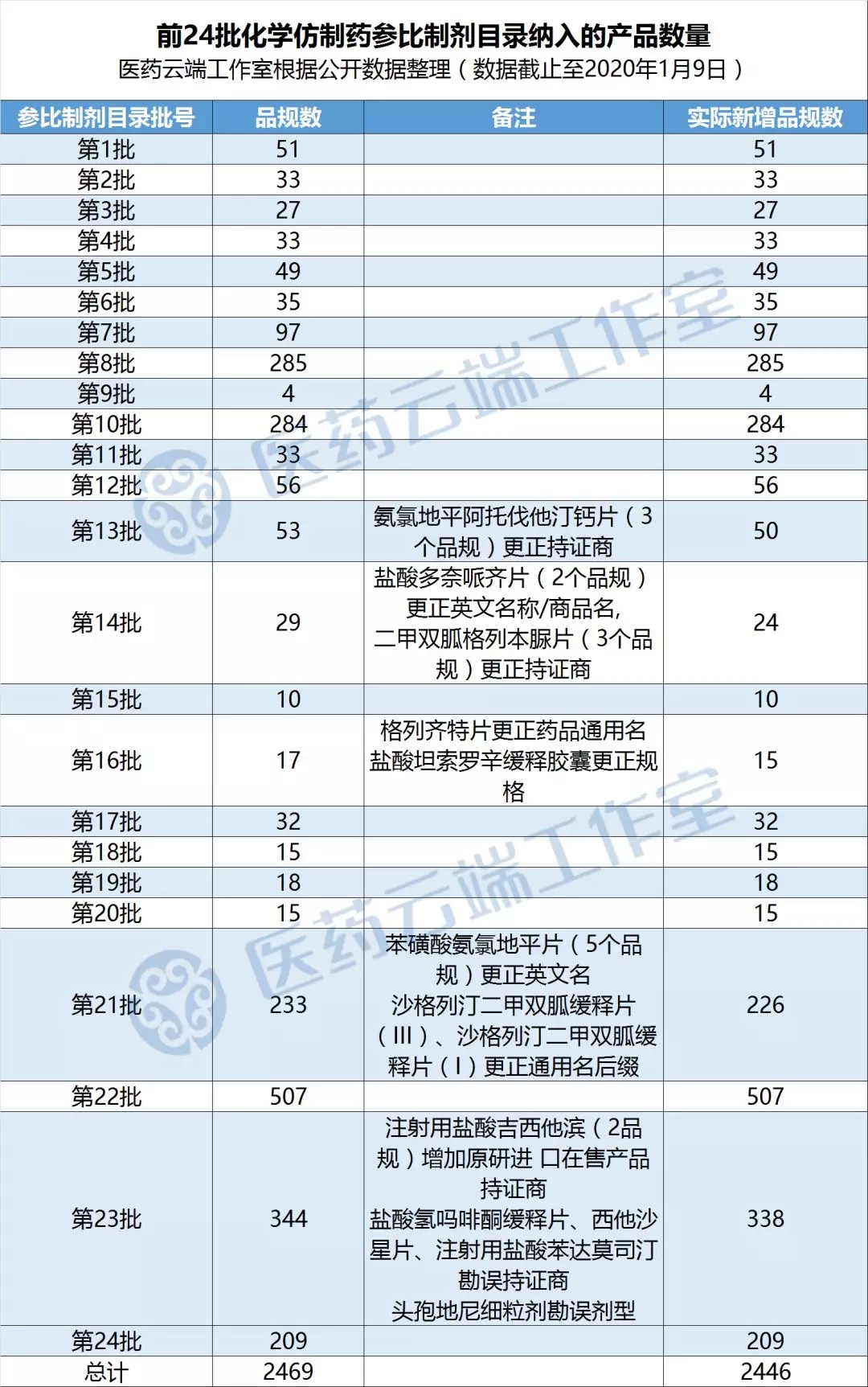根據醫藥云端工作室統計,截止目前,藥監局共發布了24批共2469個參比制劑。