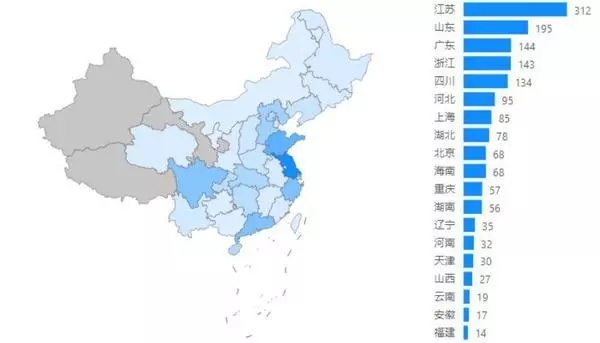 截止2019年12月31日,共有29個省市的一致性評價品種進入受理。受理號最多的是江蘇省,達到312個受理號;其次是山東省,達到195個受理號,廣東排名第三,受理號數為144個。