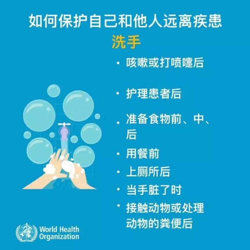 勤洗手、避免接觸眼、鼻、口可以有效防止包括流感、病毒性肺炎在內(nèi)的多種感染,是保護(hù)自己和家人健康的簡(jiǎn)單方法。在餐前便后、外出回家、接觸垃圾、撫摸動(dòng)物后,要記得洗手,揉搓的時(shí)間不少于15秒。使用肥皂和清水洗手或者使用含有酒精成分的免洗手液。