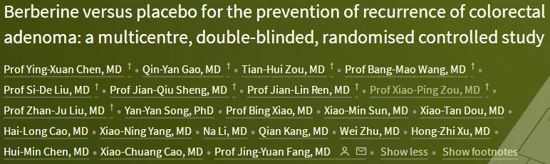 由上海交通大學醫學院附屬仁濟醫院房靜遠教授牽頭,在中國七所醫院開展的一項臨床III期試驗證實:每天服用兩次,每次三片黃連素片,可以使結直腸腺瘤患者,腺瘤完全切除后兩年內的復發風險相對下降23%!