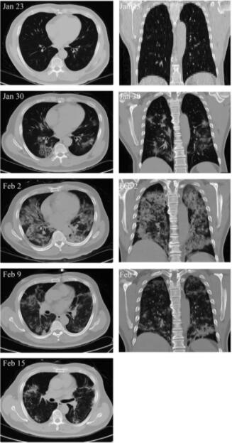 其直接效應表現在:移植后2周內,血漿淋巴細胞水平明顯下降,血漿C反應蛋白水平從105.5 g/L(2月1日達峰191.0 g/L)降低10倍左右,恢復到10.1 g/L,表明炎癥反應迅速緩解;在不額外吸氧的情況下,血氧飽和度從89%升高至98%,表明肺泡換氣功能基本恢復。