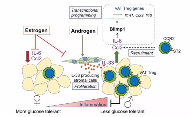 墨爾本大學的研究人員在小鼠模型的脂肪組織中發現,一種被稱為調節性T細胞(regulatory T cells,簡稱Treg細胞)的免疫細胞群在雄性和雌性小鼠之間存在數量和功能上的顯著性差異。