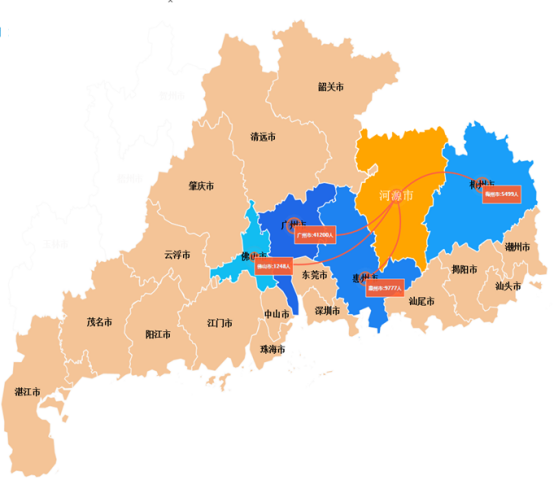 流向廣州市的病人主要有這些縣(市):普寧市(2.4萬人次)、陸豐市(2.2萬人次)、惠來縣(1.5萬人次)、海豐縣(1.3萬人次)、英德市(1.0萬人次)。