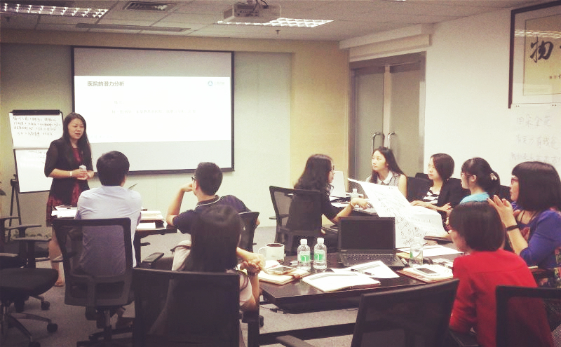 大范圍有整個醫(yī)院的潛力,小范圍有單個醫(yī)生的潛力,再細分有門診的潛力,也有病房的潛力。產(chǎn)品潛力由患者數(shù)(病床數(shù))、適應(yīng)癥比例、處方量及用藥天數(shù)(周轉(zhuǎn)率)決定。講師徐瑤琳讓學(xué)習(xí)小組以最熟悉的產(chǎn)品為例,計算一家標(biāo)桿醫(yī)院的潛力。通過計算,大家發(fā)現(xiàn)實際目標(biāo)與潛力之間還有很大的距離需要努力。通過這種列數(shù)據(jù)、擺事實、講道理的方式也更容易與銷售溝通需要進步的空間。