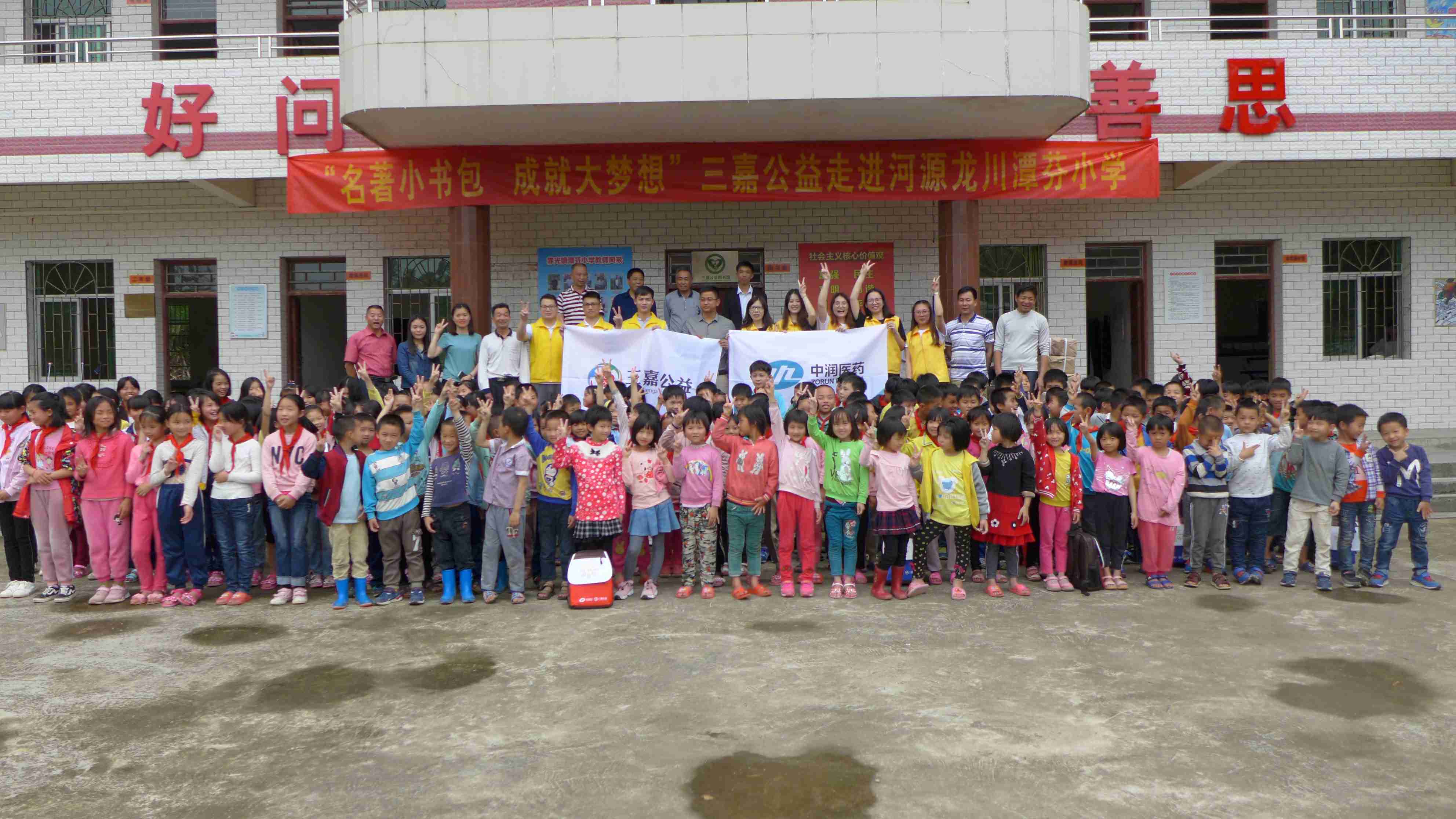 4月23日,廣東省河源市龍川縣潭芬小學和連南三排小學的孩子們迎來了一群溫暖的大朋友,他們是來自中潤醫藥集團三嘉公益的志愿者,他們來到孩子身邊,帶著為孩子們量身定制精美“名著小書包”,一起度過了一個充滿感動和難忘的“世界讀書日”。