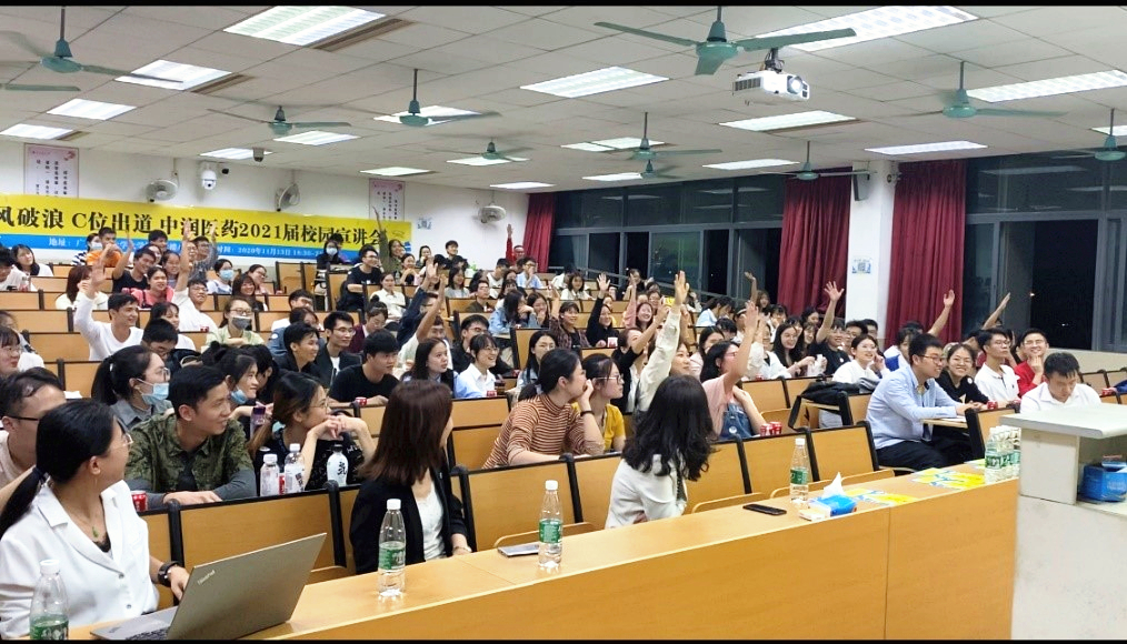 2020年11月13日,“乘風破浪,C位出道”2021屆中潤醫藥(集團)校園招聘宣講會在廣東藥科大學圓滿舉行。全場座無虛席,來自廣藥各個專業的莘莘學子,抱著對未來的希冀和對中潤醫藥的憧憬,積極參與宣講會,場面熱烈,讓我們一起回顧一下當晚的精彩瞬間。
